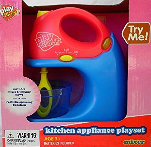 -. Binding : Toy -. Feature : Play Right Play Kitchen Appliance Playset Mixer -. IsAdultProduct : 0 -. Label : Play Right -. Manufacturer : Play Right -. ProductGroup : Toy -. ProductTypeName : TOYS_AND_GAMES -. Publisher : Play Right -. Studio : Play Right -. Title : Play Right Play Kitchen Appliance Playset Mixer