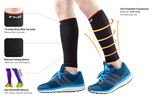 TXG Graduated Compression Ultra Thin Calf Sleeve Nylon and Lycra Extra Aquatimo Technology Keeps Legs Cool and Dry, 15-20mmHg for everyday use (M (Calf...