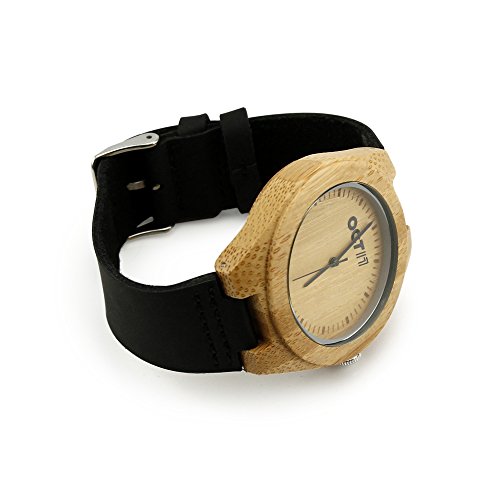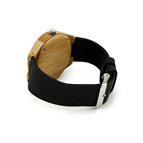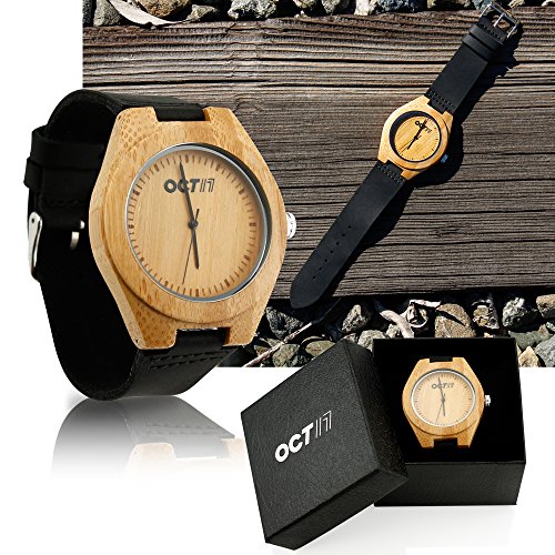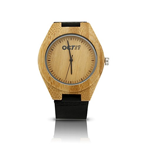 -. Feature : IDEAL GIFT - One of the newest trends that gives a sophisticated and fashionable look, merging with the feel of nature. Each watch has its own unique and beautiful wood grain pattern that makes an ideal gift for your loved ones for any occasions such as Christmas, birthdays, anniversaries, father's day, mother's day, graduations, Valentine's day, etc, or when you simply want to spoil yourself with something new and trendy. / HAND MADE & COMFORTABLE - Made of eco-friendly natural sustainable bamboo wood without any toxic chemicals. Strap made of premium quality real cattle hide leather. Super light weight for comfortable wear. Water resistant (Not for swimming/diving). / DESIGN - Unisex, hand-crafted and polished natural bamboo wood with Japanese Quartz Movement. Adjustable leather band made to fit most wrist sizes. / SIZE & PACKAGE CONTENTS - Watch Size: Approx. 45 x 45mm; Box size: H53 x L83 x D83 mm. Package includes: Watch x 1, Gift Box x 1, Watch pillow x 1. / Product of Oct17, Trademark Registered.