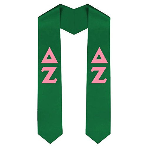 Binding : Apparel Product Description Delta Zeta sorority Greek Lettered Graduation Sash Stole. These Graduation Sashes are made of Bridal satin and measures 5" width 60" length. They come in your choice of colors: Available in black, white, light gray, pink, salmon pink, red, maroon, purple, gold, navy blue, royal blue and hunter green. Greek letters on both sides. 0