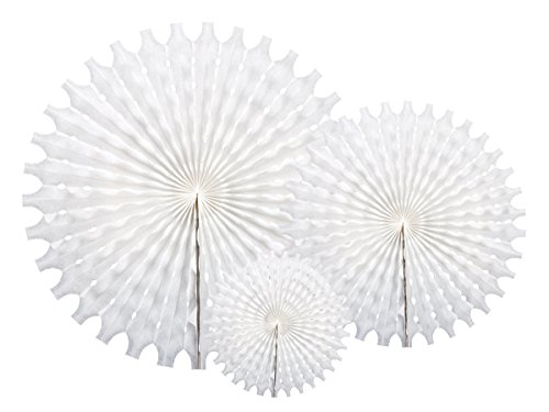 - 18-Count (6 sets of 3) paper tissue fan decorations in white