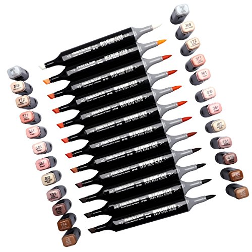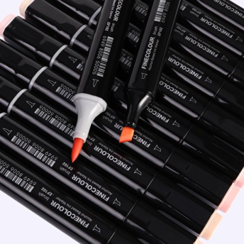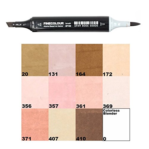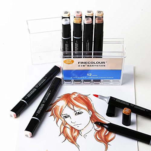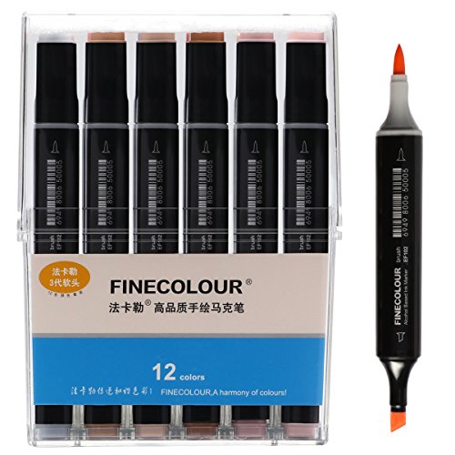 Finecolour Skin Tone Dual Tip Art Markers- Brush and Chisel Tip- Permanent Sketch Marker for Portrait, Illustration Manga Drawing, Set of 12