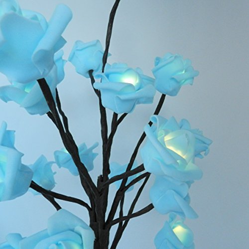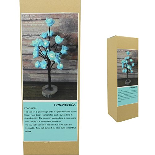 Studio : CVHOMEDECO. Publisher : CVHOMEDECO. Binding : Kitchen Product Description CVHOMEDECO. is a home and garden crafts supplier. Battery Operated w/Timer Lighted Blue Rose Tree Tabletop LED Light. Measures: tree is 22"H, base is 5"Dia. x 1-1/4"T, the increscent wooden base is more safe to avoid shaking, it is rustic vintage style and texture. Battery power: wooden base with battery box inside, use 3 x AA batteries (Not included) and battery box have ON/TIMER/OFF switch, timer is automatic open 6 hours shut 18 hours, timer can saving energy and batteries can use longer time. DIY adjust: bendable branches and tree into any shape as you like. Features: perfect design, stylish decorative accent for any room decor. Application: Home, bedroom, living room, balcony, office room, children's room, pavilion, tabletop, shelf, Christmas, New Year, parties, birthday parties, wedding ceremony, dinner party decoration. 0