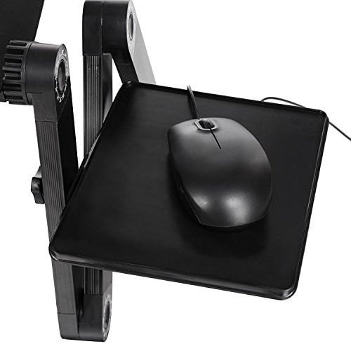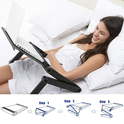 -. Feature : This Foldable laptop table stands adopt aluminum tray, lightweight and sturdy, you can Rotate 360 Degrees until you satisfied and Lock in Place at Various Angles / Easy Carry: No need to time to assembly, lightweight material make it easy to carry, and you can set it in multiple angles to fit your position, portable, and light weight allowing you to protect your investment wherever you go / Table Dimension:18.7 x 10.1inch (L x W); Mouse Board Dimension: 7.0 x 6.2inch (L x W); Arm (Single): 10.1x 1.6inch (L x W), 3 knobs on each folding arm, you can adjustable according to your needs, / Automatically fixed joints and High intensity ABS joints, easy to conduct precise angle and height adjustment / This is a magic laptop desk.360° foldable ,you can use it to Enjoy the fun of the Internet in bed, sofa, table, carpet, lawn.