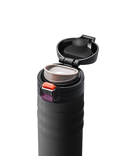 Take your steamy hot or ice cold beverages anywhere you go with Kyocera ceramic coated interior, double wall Vacuum insulated stainless steel travel mug. Kyocera travel mug features a thoughtfully designed safety lock lid making it spill proof. The lid can be opened with one hand and the unique exterior design is a delight to hold. The ceramic coated interior eliminates metallic taste, never rusts and will not stain. The wide mouth opening makes adding ice cubes very easy. It's great for indoor and outdoor use including the kitchen, car, work, school, camping, hiking, hunting, picnics and more. Keep drinks hot or cold for at least 6 hours and up to 12 hours depending on the starting temperature of the liquid.Feature