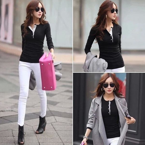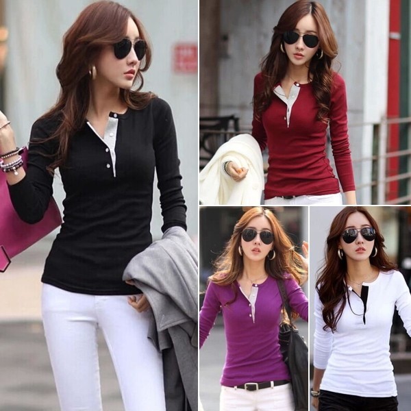 | 商品名 | ヘンリーネック スキッパー 無地 長袖 スリムTシャツ カットソー |