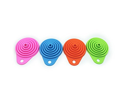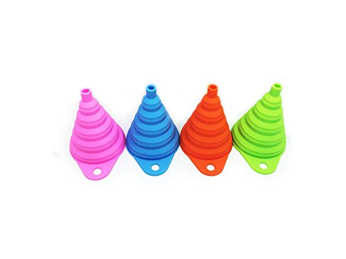 Silicone Funnels Set /Collapsible Funnel /Folding Funnel for Liquid Transfer-4Pcs-4Color (Pink,Green,Orange-Red,Blue) Food Grade Silicone