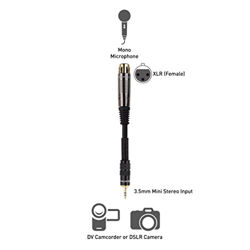MONO MICROPHONE CABLE connects a professional mono XLR microphone to a digital camcorder, DSLR camera, or computer sound card with a mini stereo MIC IN port; Connect a condenser mic to your camera or a handheld mic to your PC for karaoke; Step-down design of 3.5mm connector allows for connection to recessed camera mic ports