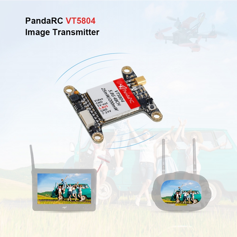 PandaRC VT5804 is a high quality FPV image transmitter which supports 25mW / 200mW switchable. It's special designed for stable output transmission power, and high performance wave filter which features no snowflake and strips even under maximum throttle.