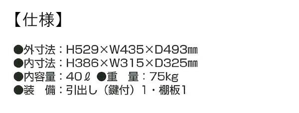2ヶの鍵穴に、左用、右用のキーを差し込み廻すだけの操作で開閉が出来る便利なシステムです。 製造国:韓国 素材・材質:SPC鋼板、気泡コンクリート 付属品:鍵付き引き出し1個、棚板1個取扱説明書、保証書(保証期間1年) ※メーカー直送品