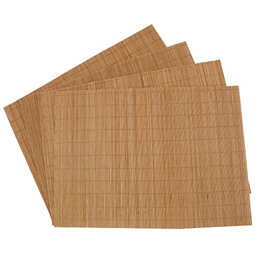 - Feature : BambooMN branded products are sourced from Certified Factories that provide fair and good working conditions for the workers. BambooMN supports Oxfam and Second Harvest Heartland. / 4 pcs of brown bamboo placemats. Each placemat measures approx 12.75" X 18.5" / Bamboo is a highly renewable resource, and is ideal for kitchen products because it is natural, non-toxic, and durable. / Placemats are constructed with round sticks of bamboo. These are similar in construction to sushi rolling mats, and may be used as such. / Easy to maintain, just shake off over sink, and wipe with a damp cloth.