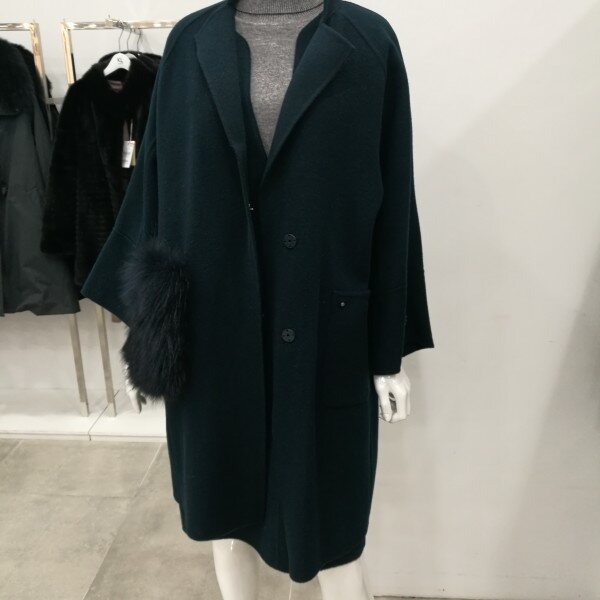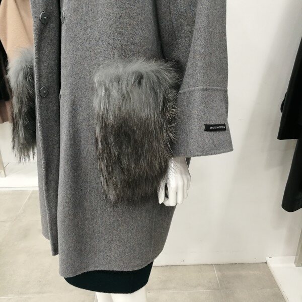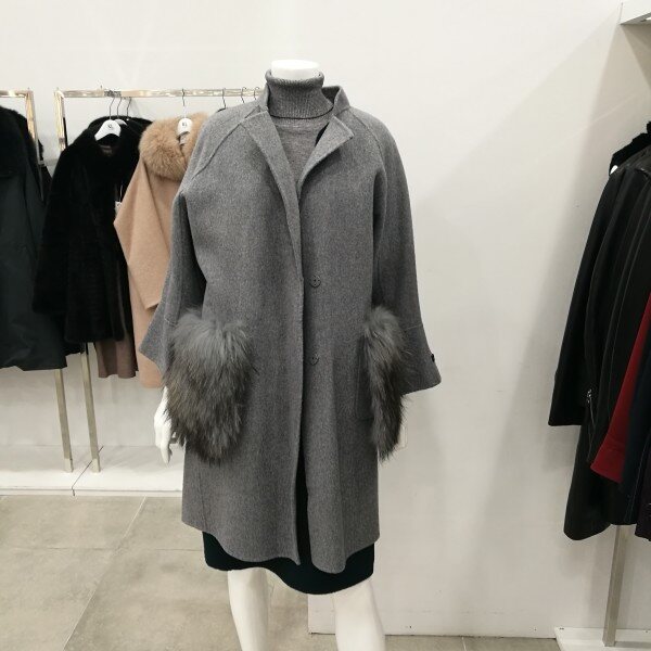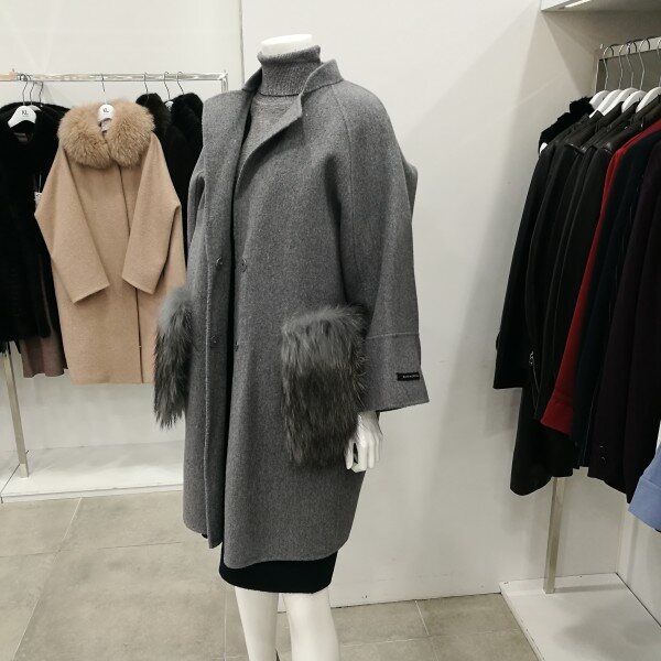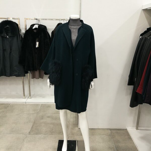 울 100%인 핸드메이드 하프코트로 루즈핏으로 아주 세련되고 고급스러운 스타일이다. 주머니는 너구리털로 귀엽고 따뜻해 보이는 악세사리로 탈,부착이 된다.