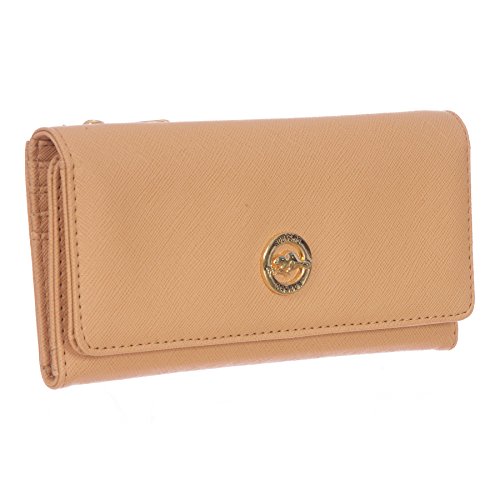 Features a beautifully textured saffiano PU material
