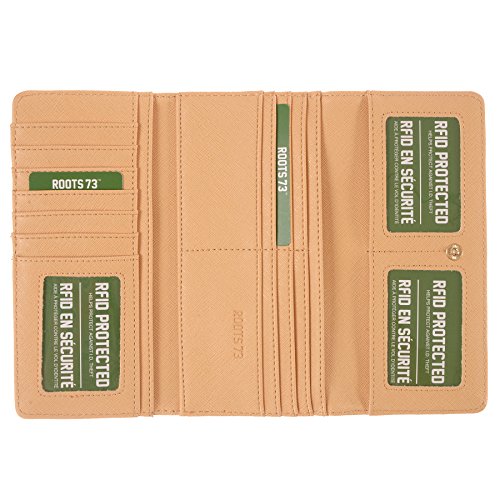 This cleverly designed Roots 73 Slim Wallet with Zipper Pocket is offered in beautifully textured saffiano. Thin and sleek this wallet will keep you organized and protected with RFID. Available in Black, Citrus, and Blush.