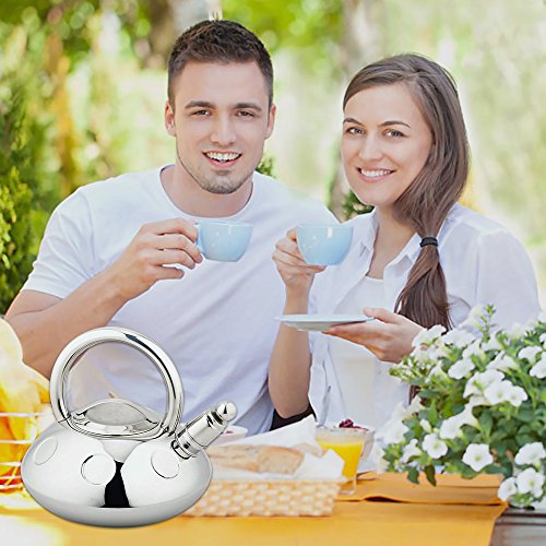 DISTINCTIVE ELEGANCE TO ANY KITCHEN -- Uni-body design makes stainless steel teapot more elegant and stylish. Round base and stainless steel handle are quite chic. Both your family and friends will be deeply impressed by our metallic kettle.