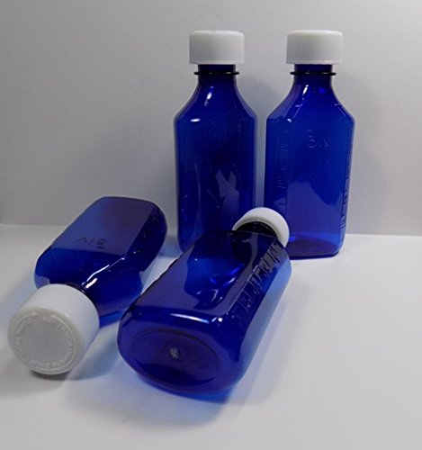 Lot of 100 Brand New Cobalt Blue Graduated Oval 2 Ounce Amber RX Medicine Bottles w/Caps