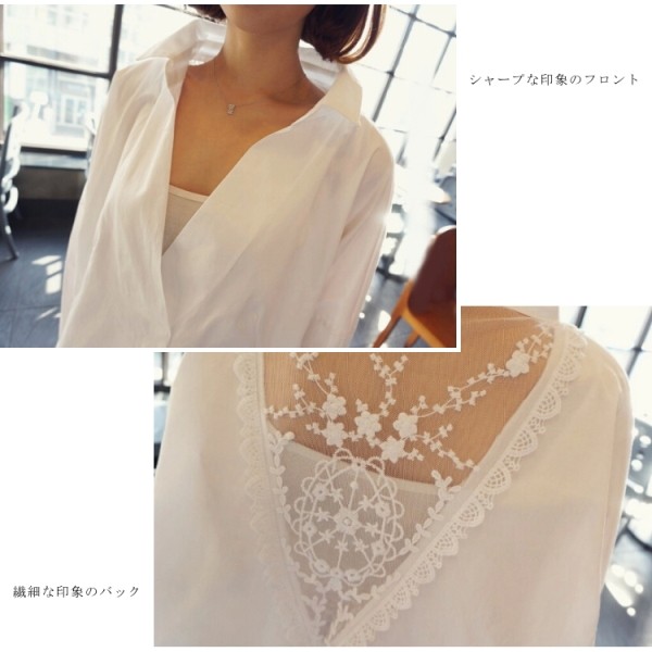 | 素材 | コットン 30% ポリエステル 70% ◆伸縮性 なし ◆裏地 なし ◆透け感 なし ■説明文■バックシースルーレース ゆったりプルオーバー シャツブラウス♪ 大きく開いたデコルテで大人スタイルが際立つゆったりめのシャツです。 バックは大胆なシースルーデザインで透け感レイヤードも楽しめます♪【201612TSEW】 |