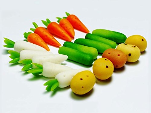 -. Feature : These cute handicraft Dollhouse Miniature Vegetables Set are of a good quality, and the detail is nice to decorate your dream dollhouse. / Quantity: 20 pcs (5 Carrots, 5 Parsnips, 5 Potatoes, 5 Cucumbers) / Material : Polymer Clay / Size of potato approx. : 1cm (0.4") / Scale: 1:12