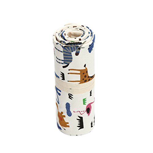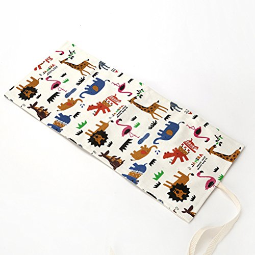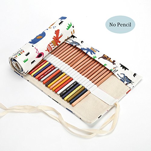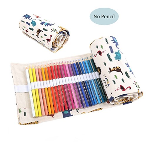 48 Slots Colored Pencils Roll up Pouch Canvas Pen Bag With Strap for School Office Cute Animals Pattern (48-Holes)