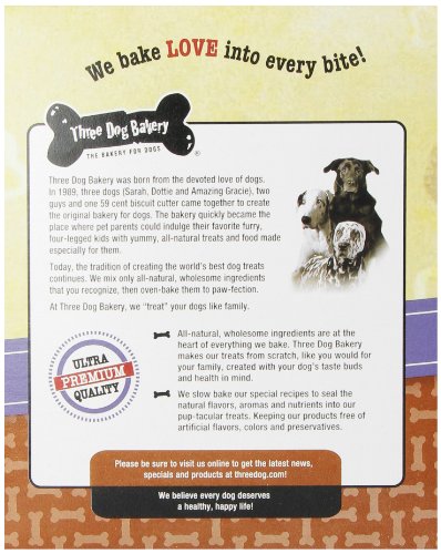 -. Binding : Misc. -. Brand : Three Dog Bakery -. Label : Three Dog Bakery -. Manufacturer : Three Dog Bakery -. PackageQuantity : 1 -. ProductGroup : Pet Products -. ProductTypeName : PET_SUPPLIES -. Publisher : Three Dog Bakery -. Studio : Three Dog Bakery -. Title : Three Dog Bakery Classic Cremes Baked Dog Treats