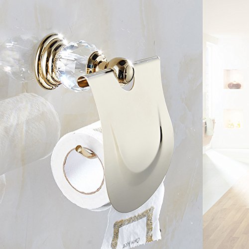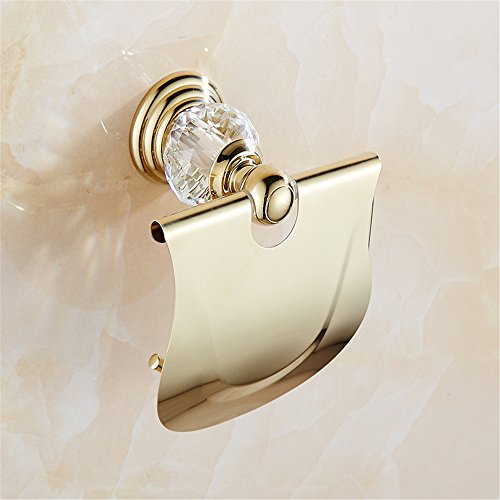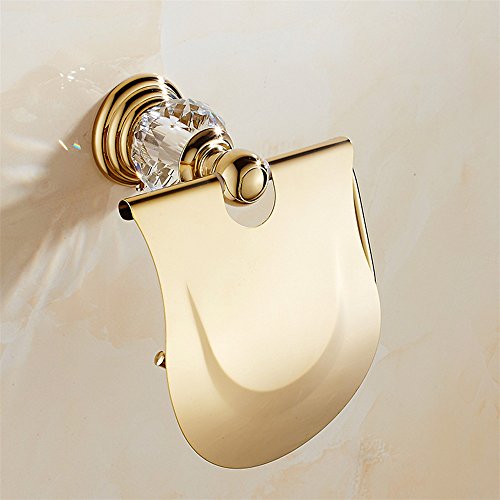 WINCASE European Toilet Paper Holder Roll Tissu Holder with Cover, Waterproof for WC all Zinc Construction Wall Mounted Luxury Polished Gold finished
