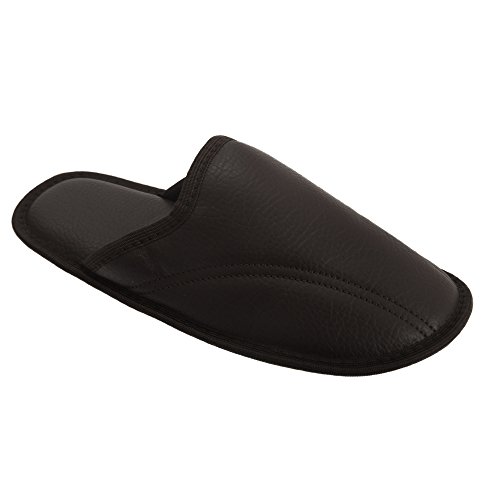 Binding : Apparel Product Description Mens mule slippers with memory foam sole. Memory foam inner for extra comfort. Open back. Textured sole for added floor traction. Choice of 3 colors. Choice of 6 sizes. Upper: Textile. Lining and Insole: Textile. Sole: Textile. Wipe clean only. 0