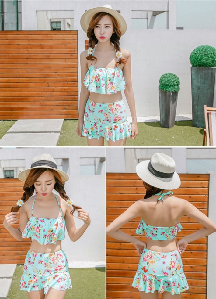 カワイイ花柄フリルビスチェとミニスカートで今年の夏は楽しもう♪3カラーからどうぞ!