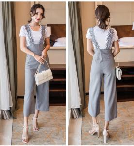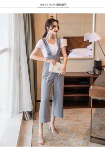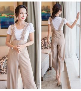 セットコーデ ストライプ ハイウエスト サロペット 半袖 大人可愛い 大人カジュアル プチプラ ワイドパンツ ストレート