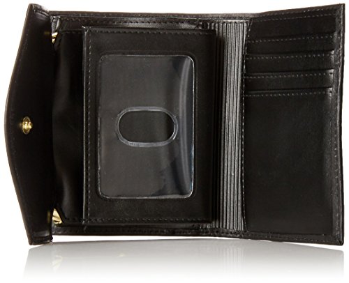 This classic ladies' wallet has a generous space for credit cards, change and cash. This folds in half and has an top outside snap closure for easy access to your change.Wallet has a snap closure in front.