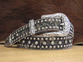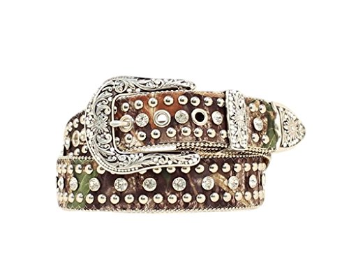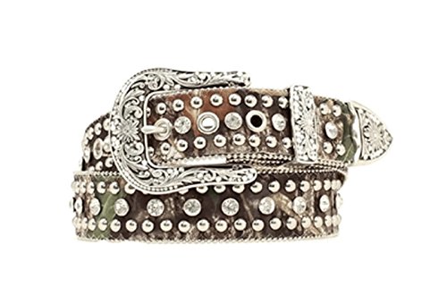 Studio : Nocona Publisher : Nocona Binding : Apparel Product Description Show off your fashion sense with this great Nocona belt by MF Western Products. The camouflage belt strap has a center row of rhinestones with studs on each side. This belt will surely get you noticed with all the bling. The buckle is removable if you want to create your own look. Width 1 1/2'. Material: Leather, Metal. 0