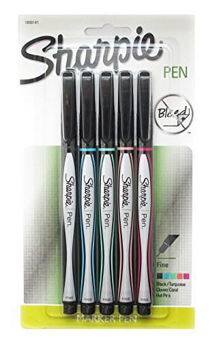-. Feature : Bold, brilliant colors make a vibrant impression / Archival-quality, acid-free ink does not bleed through paper / Fine point draws flawless details / Quick-drying permanent ink is water, fade and smear resistant / Includes: Black, Turquoise, Clover, Coral and Hot Pink Sharpie marker pens (Cap color may vary by pack)
