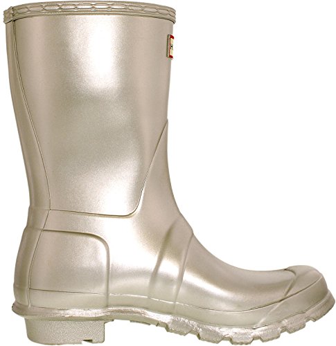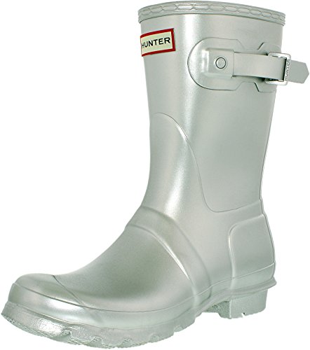 Studio : Hunter Publisher : Hunter Binding : Shoes Product Description The short-shaft style of the original Hunter Boots wellies, updated in metallic rubber. A brushed buckle details the top strap. Woven nylon lining lends extra warmth, and a cushioned footbed offers comfortable wear. Textured sole. 0