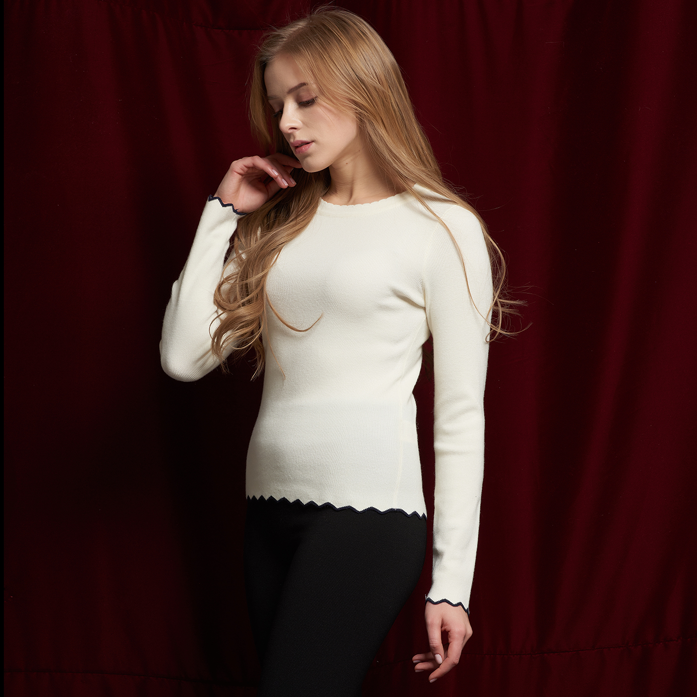 물결라인의 배색컬러가 예쁜 니트 탑입니다.