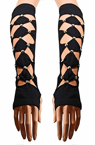 Binding : Apparel Product Description Arm sleeves with Cone StudsSuper soft fingerless sleeves with trendy patternOur supple arm warmers are worn pleasantly. The soft and yet stretchable materials keep the arms warm. The sleeves have an elastic band at both ends and extend from the center of the palm to the elbow. Material: 80% Cotton, 10% Nylon, 10% Elastic Size: One Size (stretchy) Packed in pairsCare instructionsWash at or below 40°C, Do not dry clean, Do not bleach, Do not tumble dry, Do not iron Note: Based on various color profiles on computer monitors differences in color and pattern may occur. 0