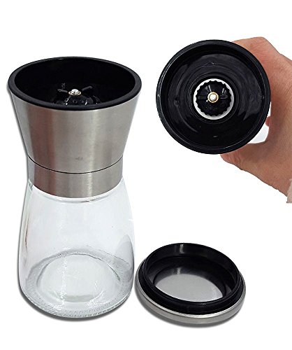 - 【Material】: Ceramic rotatory grinding head, non-corrosive, won't absorb flavors and is easily adjustable from a fine to coarse grind. Stainless steel cap, food grade and durable. Glass body is transparent, thick, solid, and useful