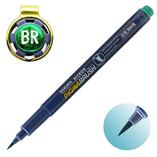 -. Feature : Sakura pigment ink pen, pigma brush green / Model-ESDK-BR#29 / Water base pigment color pen from Japanese stationary Brand sakura cray-pas, pigma Series