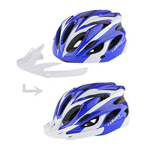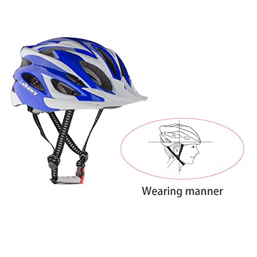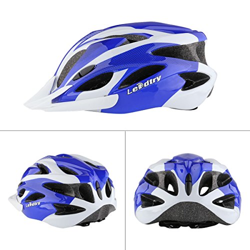 Leadtry HM-3 Bike Helmet Ultralight Integrally Molded EPS Bicycle Helmet Safety Helmet Specialized for Road/ Mountain Terrain Bicycle with Comfortable Removable Washable Antibacterial Pads White+Blue