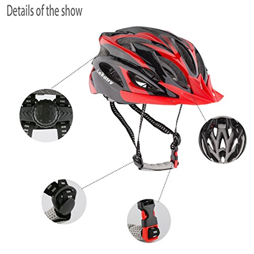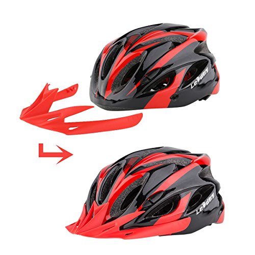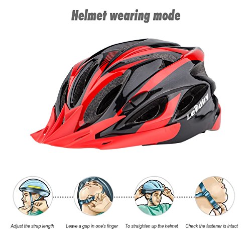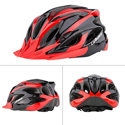 Leadtry HM-3 Bike Helmet Ultralight Integrally Molded EPS Bicycle Helmet Safety Helmet Specialized for Road/ Mountain Terrain Bicycle with Comfortable Removable Washable Antibacterial Pads (Black+Red)