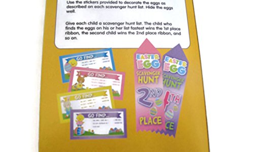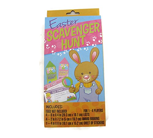 Product Description Add some fun to your Easter Egg Hunt party with this Scavenger Hunt Kit and plastic egg set. Children will have a great time following the directions on their list to find their eggs! Awards included! Kit is for 4 children. 0