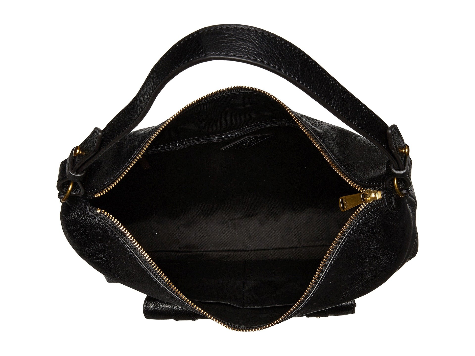 | Product Information SKU: #8956841Prime time style is yours with the cool Fossil? Cleo Hobo bag.Made of leather.Zipper closure.Top carrying handle.Exterior front slip pocket with decorative buckle detail.Signature logo embossed detail in front.Lining made of cotton.Interior back-wall zip pocket.Two interior front-wall slip pockets.Imported.This product may have a manufacturer's warranty. Please visit the manufacturer's website or contact us at warranty@support.zappos.com for full manufacturer warranty details.Please note, the hardware color and interior lining may differ from the color shown in the photo.Measurements: Bottom Width: 13 in Depth: 2 in Height: 12 1?2 in Strap Length: 19 in Strap Drop: 9 in Weight: 1 lb 7 oz |