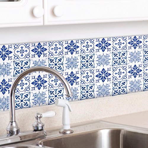 Wallies Wall Decals,3" x 3" Blue Tiles Wall Stickers, Set of 30