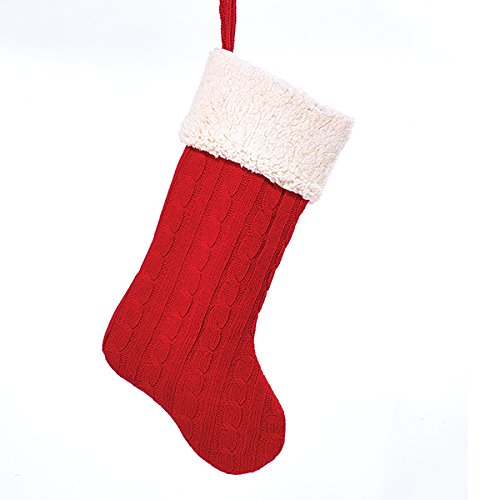 Kurt Adler 20 Inch Red Cable Knit With White Fur Classic Christmas Stocking