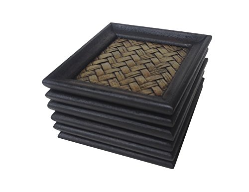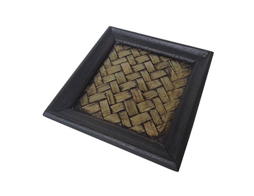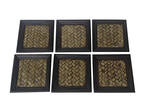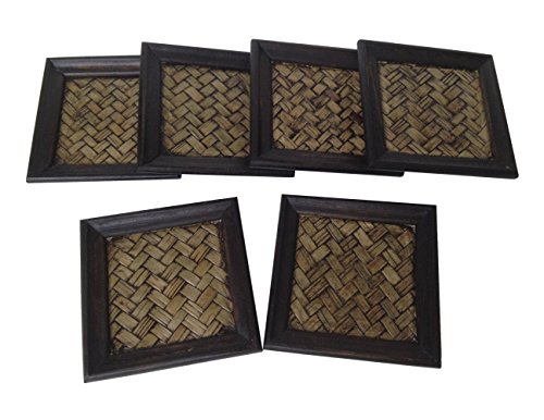 Wood For Décor Wooden Square Style Décor Elephant Saucer Mango With Bamboo Woven Small Dark Brown Oak Set of 6 pieces