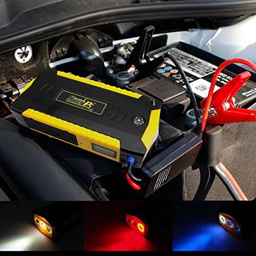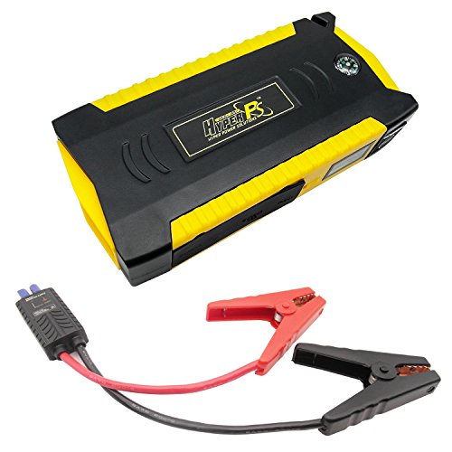HyperPS 18000mah 900A Peak Multi-Function Car Jump Starter with Smart Safety Protection Car Jump Cable (up to 8.0L Gas and 6.0L Diesel Engine) with Built-in Survival Hammer, Blade, LED Flashlight