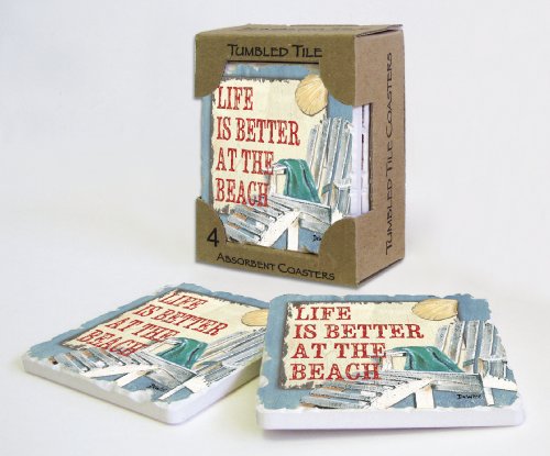 CounterArt Tumbled Tile Coasters, Beach Time, Set of 4