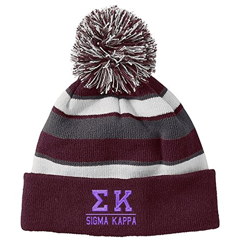 Product DescriptionSigma Kappa Greek Comeback Beanie Warm and soft 100% acrylic rib knit Tri-color pom-pom detail on top Folded hem Fit type: One size0