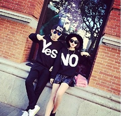 -. Title : 仲良し カップル ペアルック YES NO トレーナー 男女兼用 双子コーデ
