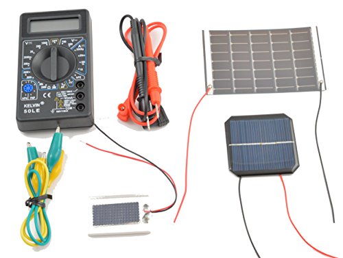 Studio : Sundance Solar Publisher : Sundance Solar Binding : Toy Product Description Contents of Kit 6V 50mA Polycrystalline solar panel with wires Rated voltage (Vmp): 6.0V Open circuit voltage (Voc): 7.2V Rated current (Imp): 50mA Short circuit current (Isc): 55mA. - 6V 50mA Amorphous Thin Film solar panel with wires Rated voltage (Vmp): 6.0V Open circuit voltage (Voc): 8.0V Rated current (Imp): 50mA (Typical 55mA) Short Circuit current (Isc): 65mA 2.87" x 4.49", 73mm x 114mm, Digital Multimeter with leads 2 Alligator Clip test leads, Calibrated crystalline solar cell, measured at perfect full sun (1 sun). -- What can you do with this kit? Test open circuit voltage of each panel in different sun conditions and orientation. Test open circuit current of each panel in different sun conditions and orientation. Compare your results to the manufacturer's specifications of each solar panel. Measure voltage and current of the calibrated solar cell in full sun, then compare those results to the voltage and current written on the back of the calibrated panel. If your results are 125mA and the panel says 250mA, you are getting 50% sun in that location, orientation and time of day. Compare the solar panel results to the percentage of full sun you are getting with the calibrated cell. Includes instruction sheet. 0