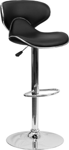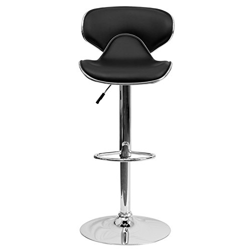 -. Title : Contemporary Cozy Mid-Back Black Vinyl Adjustable Height Barstool with Chrome Base