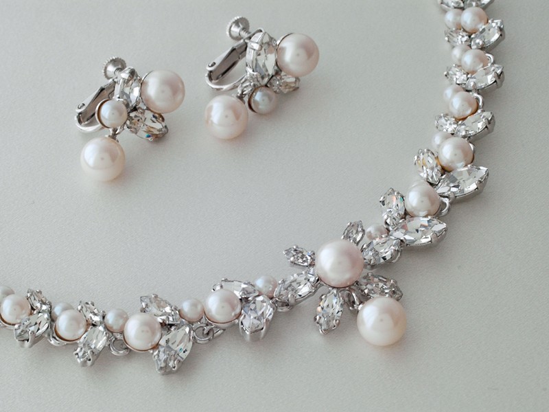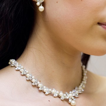 シンプルなウェディングドレスやビスチェタイプのウエディングドレスの胸元に、スワロフスキーの上質なきらめきをプラス!